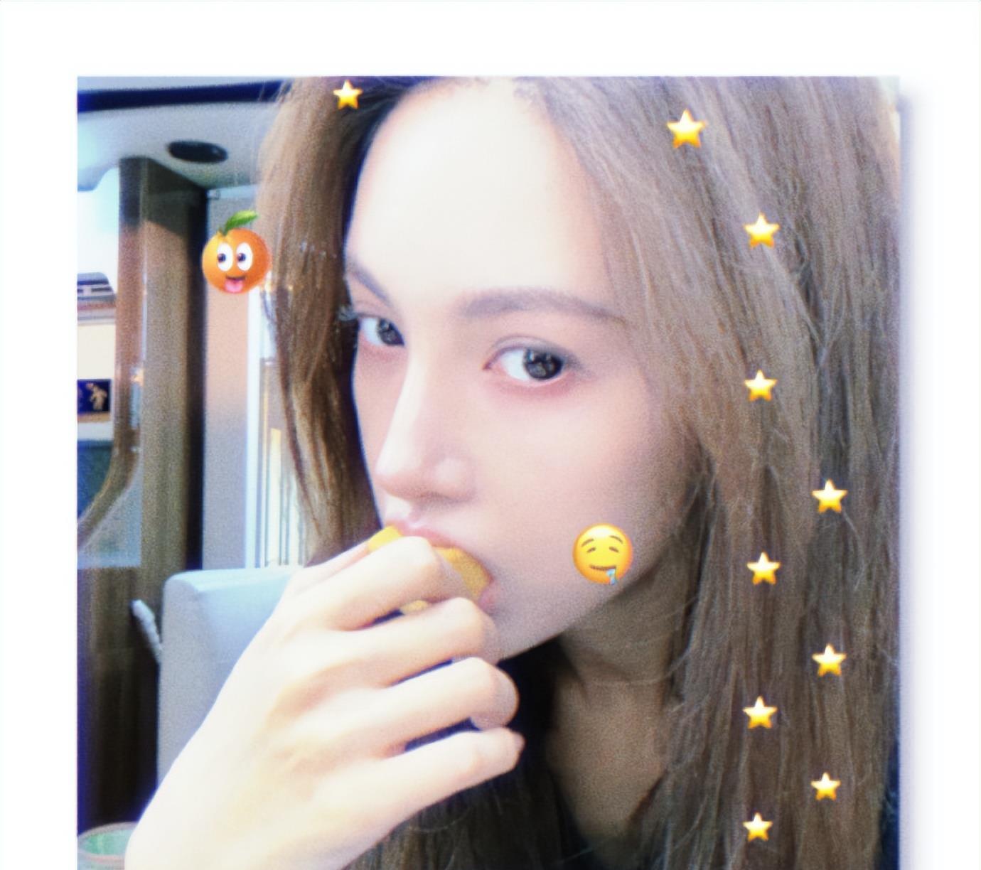 她用指尖轻遮着唇,脸颊边贴了串小灯串样式的贴纸,头发挑染了几缕浅金色,在光里泛着细闪。她跳舞台舞时,发型总选高马尾或利落盘发,怕发丝影响动作舒展。现在这挑染的中长发松松披着,贴纸顺着脸颊贴得随意,连遮嘴的动作都带着点小俏皮,不是舞台上设计好的 “表情管理”,是对着镜头突然害羞的本能反应,软萌得没半点刻意。